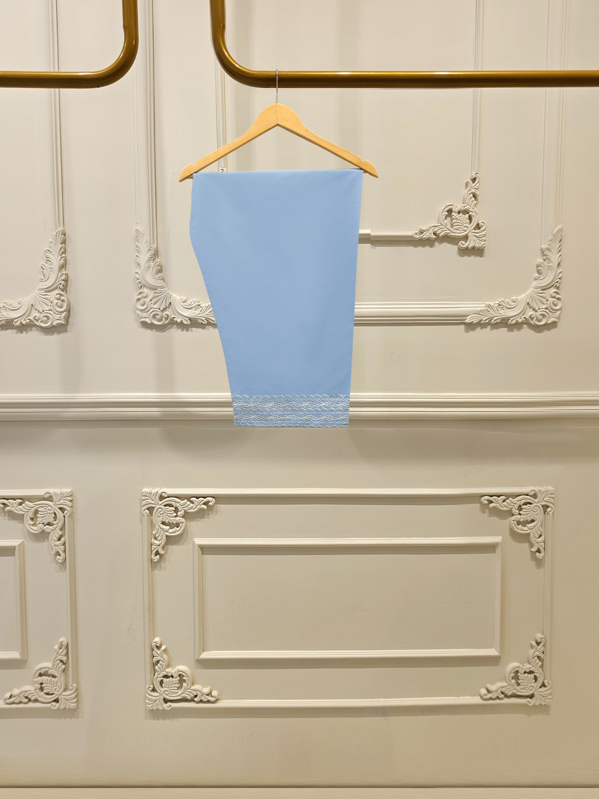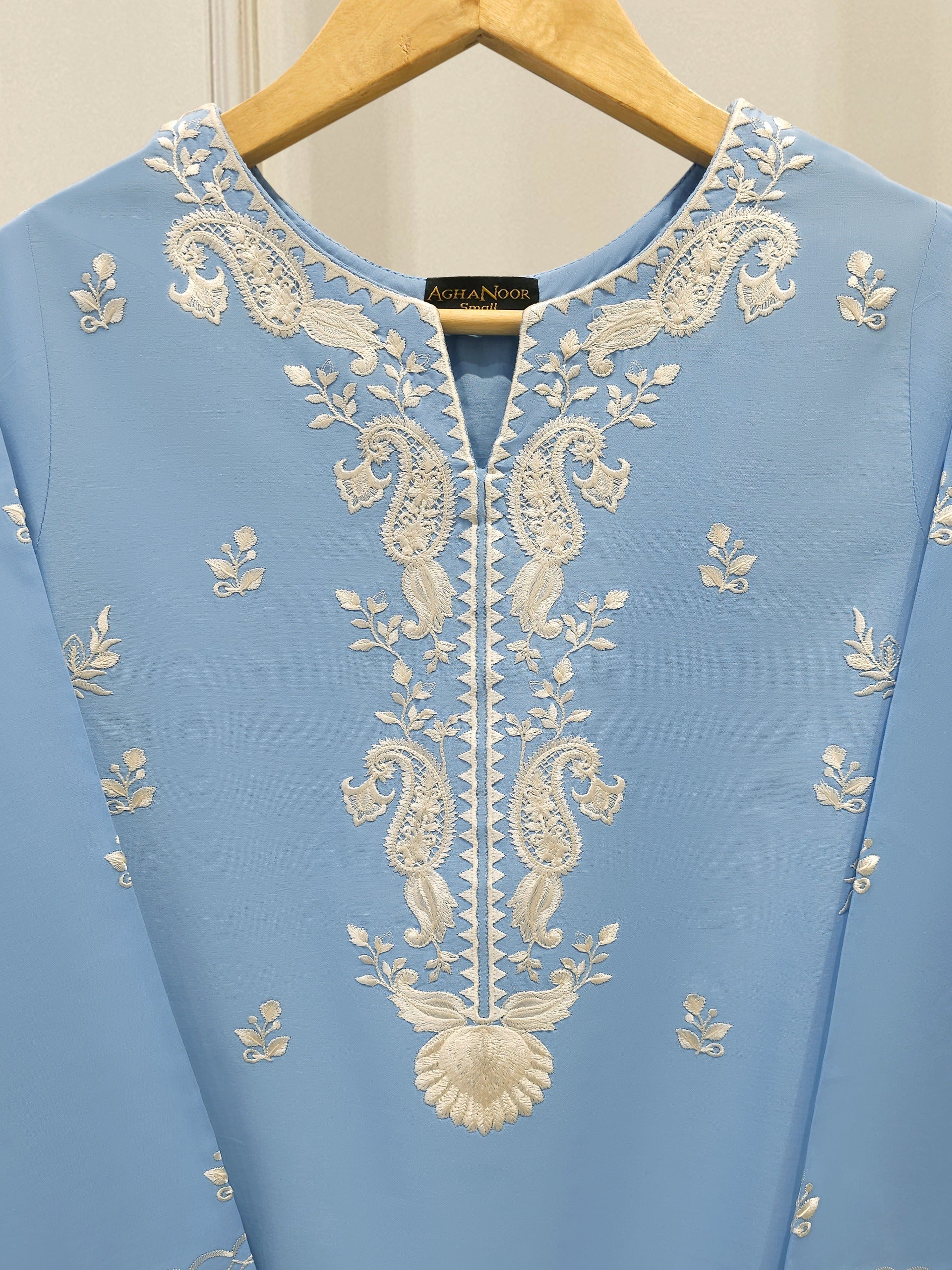 Elevate your summer wardrobe with this beautifully crafted sky blue lawn shirt, featuring intricate Chikan Kari work on the sleeves and daman. Designed for timeless elegance, this piece blends breathable lawn fabric with traditional craftsmanship, perfect for festive occasions or casual sophistication. Pair it with pants for a complete look.