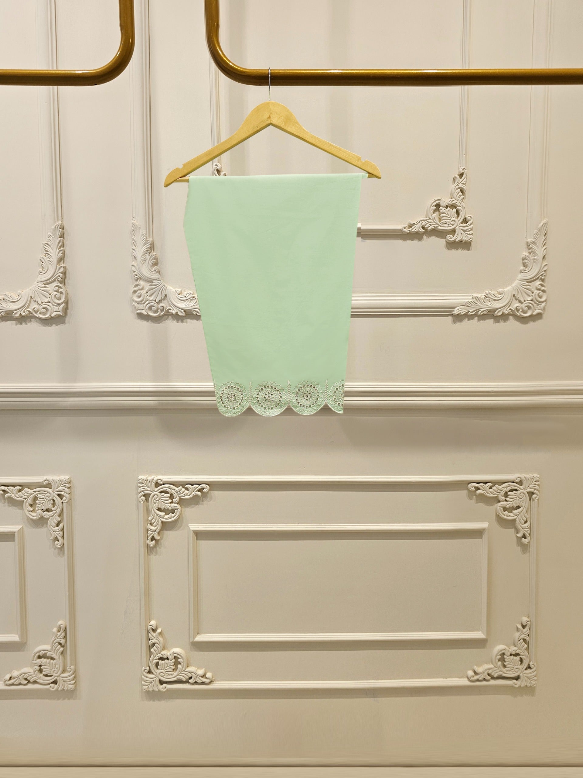 Elevate your summer wardrobe with this beautifully crafted pist green lawn shirt, featuring intricate Chikan Kari work on the sleeves and daman. Designed for timeless elegance, this piece blends breathable lawn fabric with traditional craftsmanship, perfect for festive occasions or casual sophistication. Pair it with pants for a complete look.