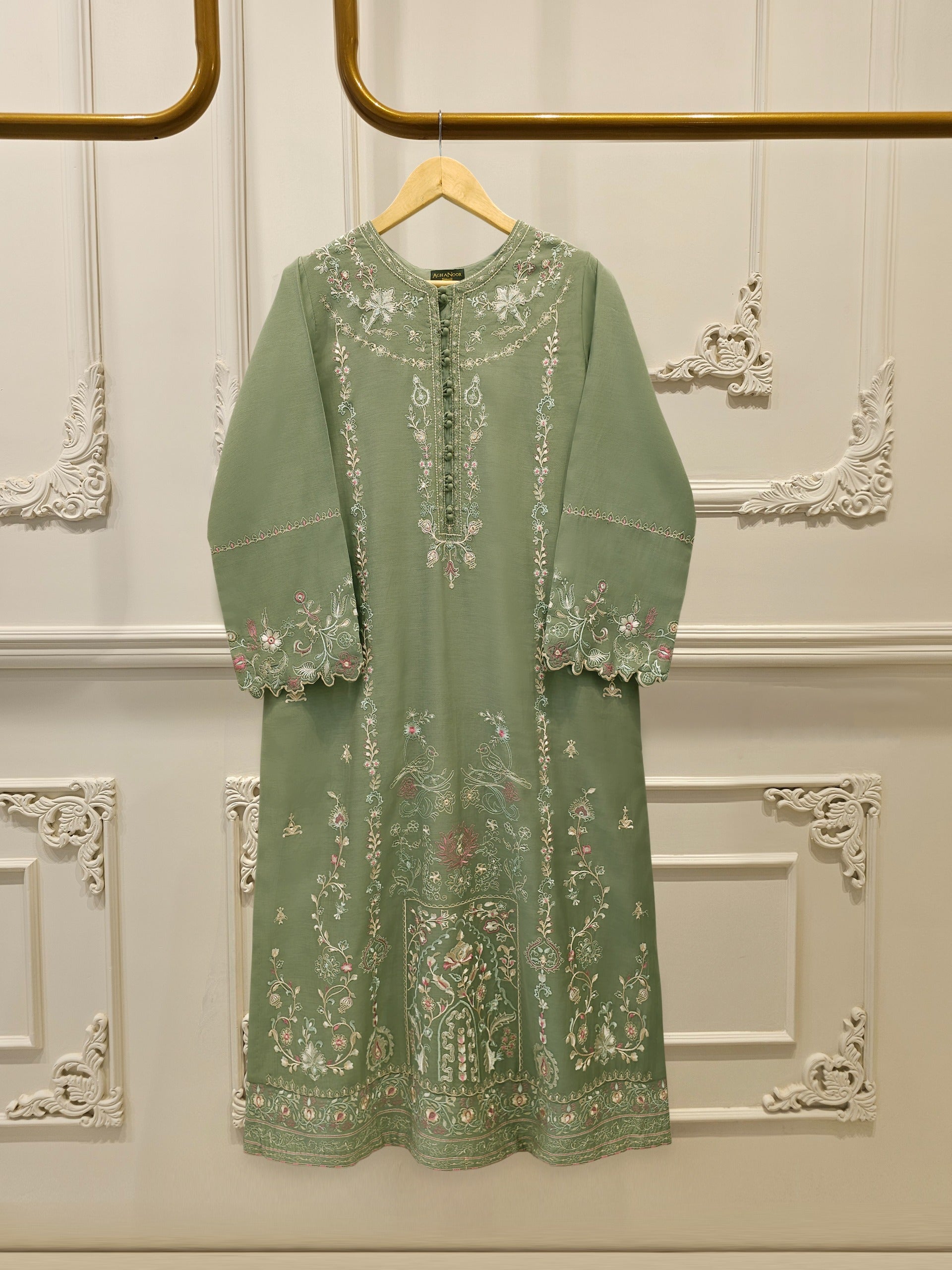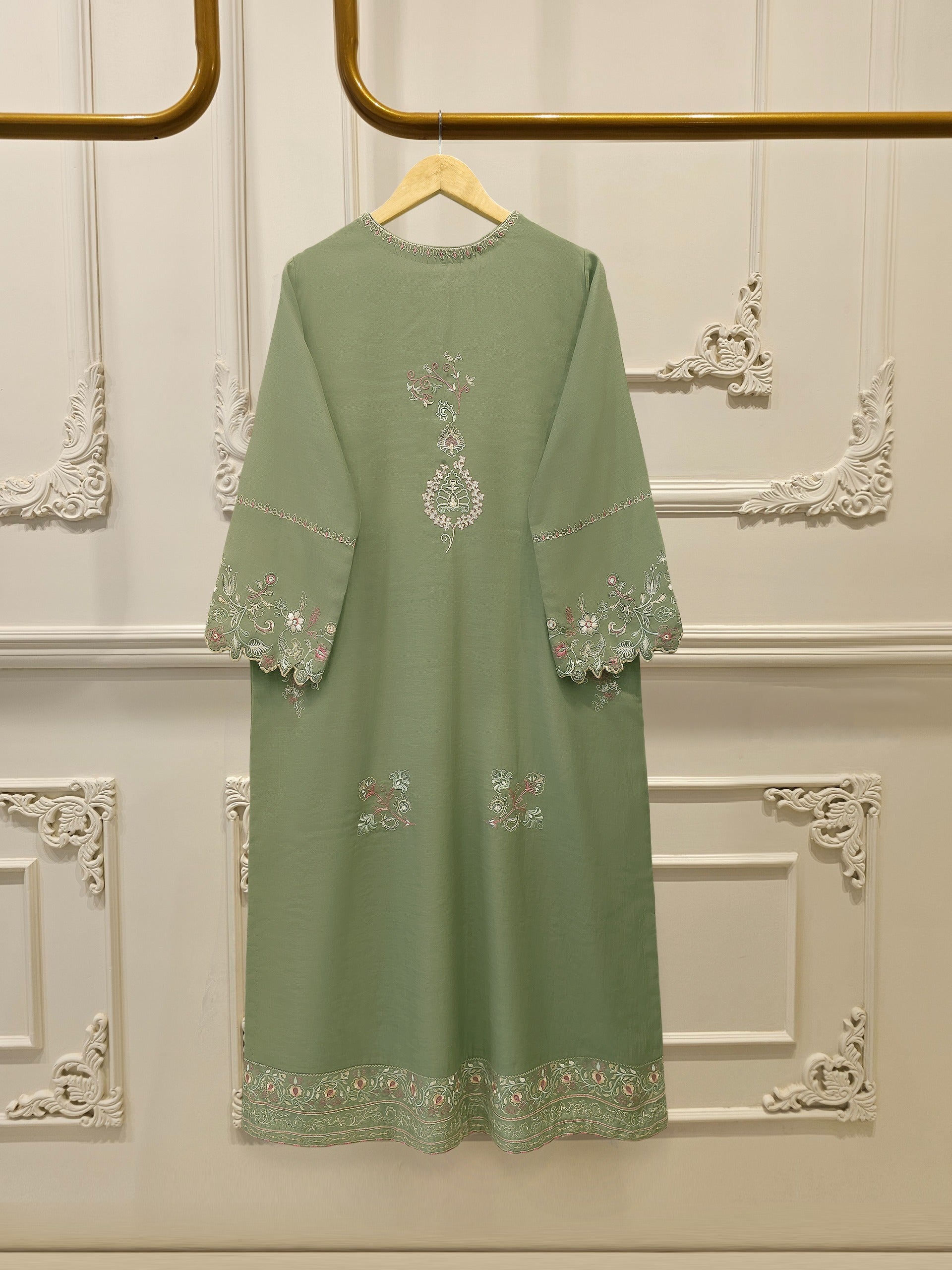 Elevate your summer wardrobe with this beautifully crafted green kora cotton shirt, featuring intricate . Designed for timeless elegance, this piece blends breathable cotton fabric with traditional craftsmanship, perfect for festive occasions or casual sophistication. Pair it with pants for a complete look.