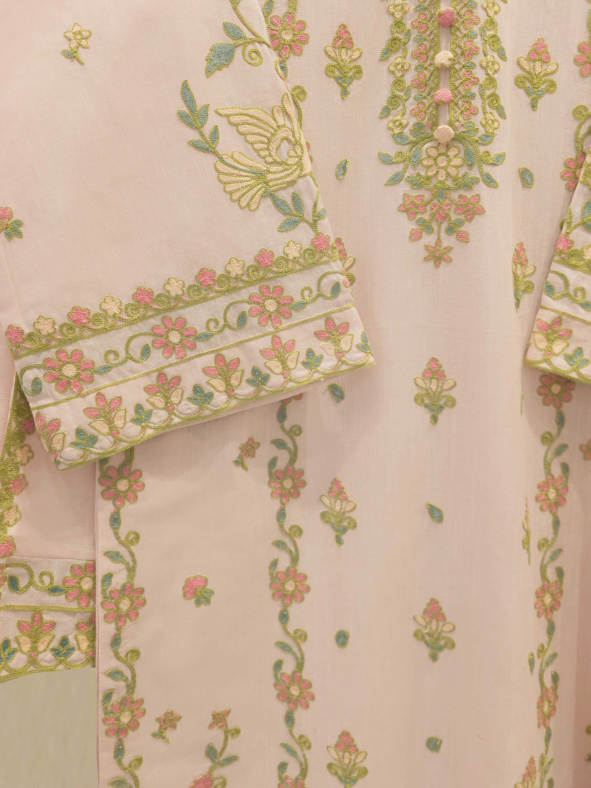 Fawn embroidered khaddar suit features a rich, traditional design on a warm, textured fabric ideal for cooler weather. The intricate embroidery add a touch of elegance, while the soft yet durable khaddar material ensures comfort and style for everyday wear or casual gatherings. Perfect for autumn and winter seasons.