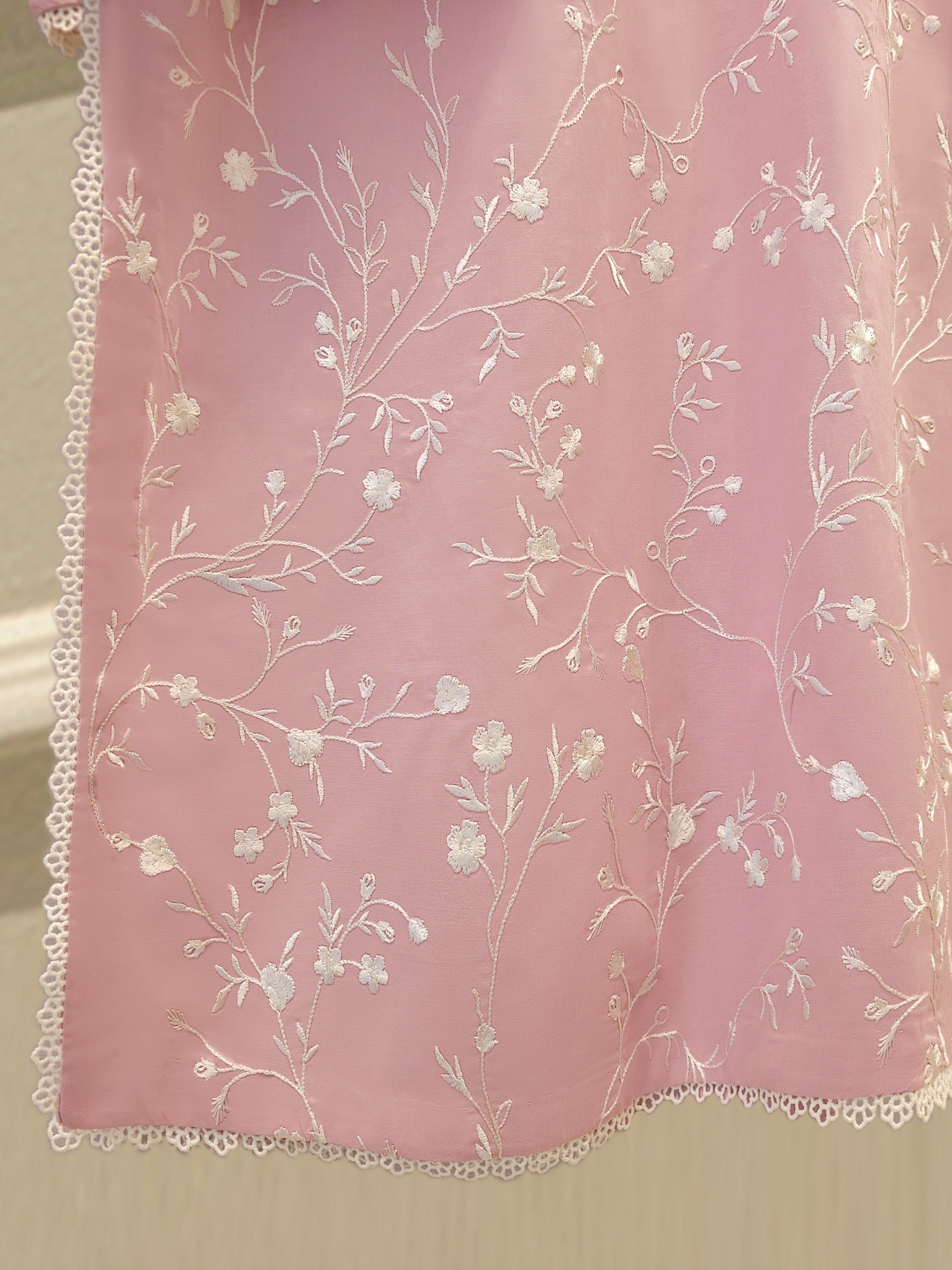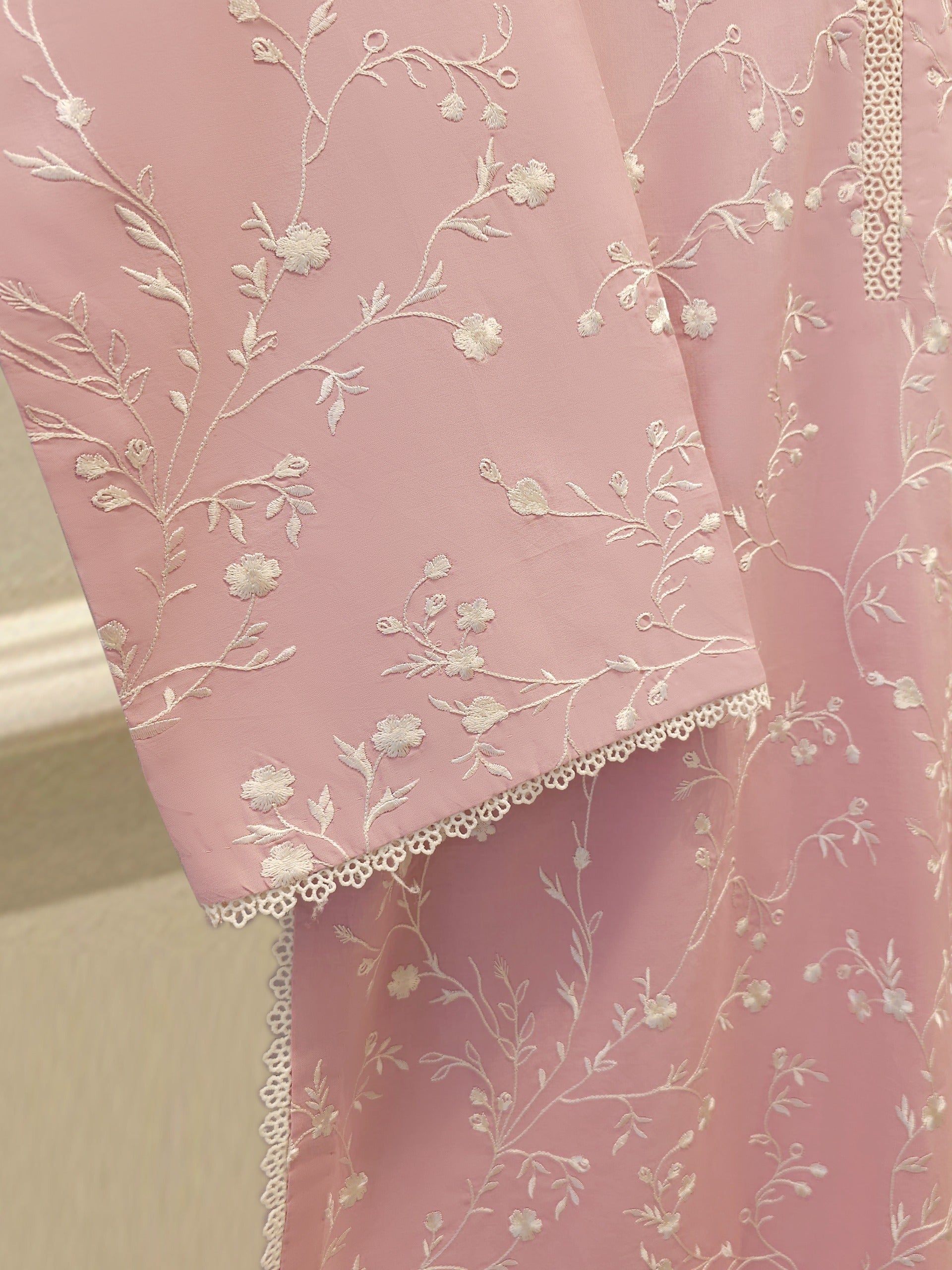Elevate your summer wardrobe with this beautifully crafted tea pink lawn shirt, featuring intricate Chikan Kari work on the sleeves and daman. Designed for timeless elegance, this piece blends breathable lawn fabric with traditional craftsmanship, perfect for festive occasions or casual sophistication. Pair it with pants for a complete look.