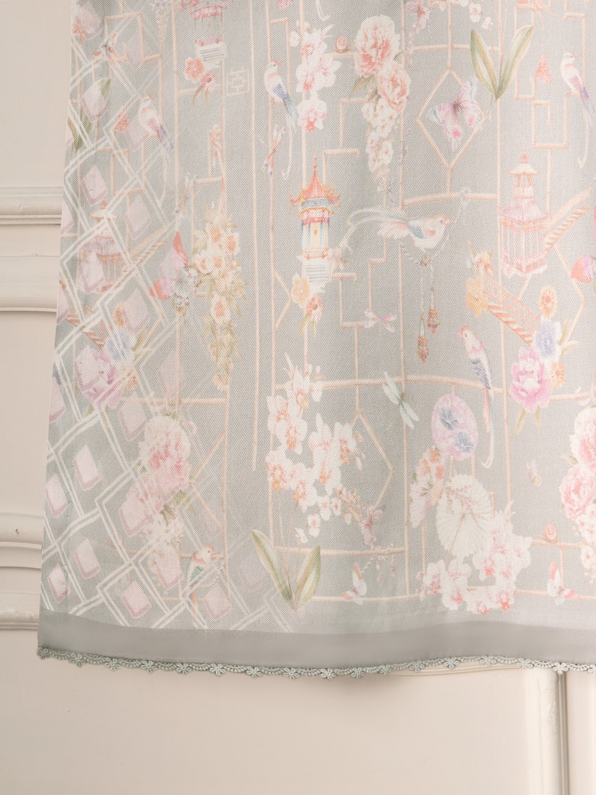 Embrace the festivities of the season in style with our grey one-piece accented with intricate print. Our exquisite suit is crafted in marina fabric, printing elegance and grace.